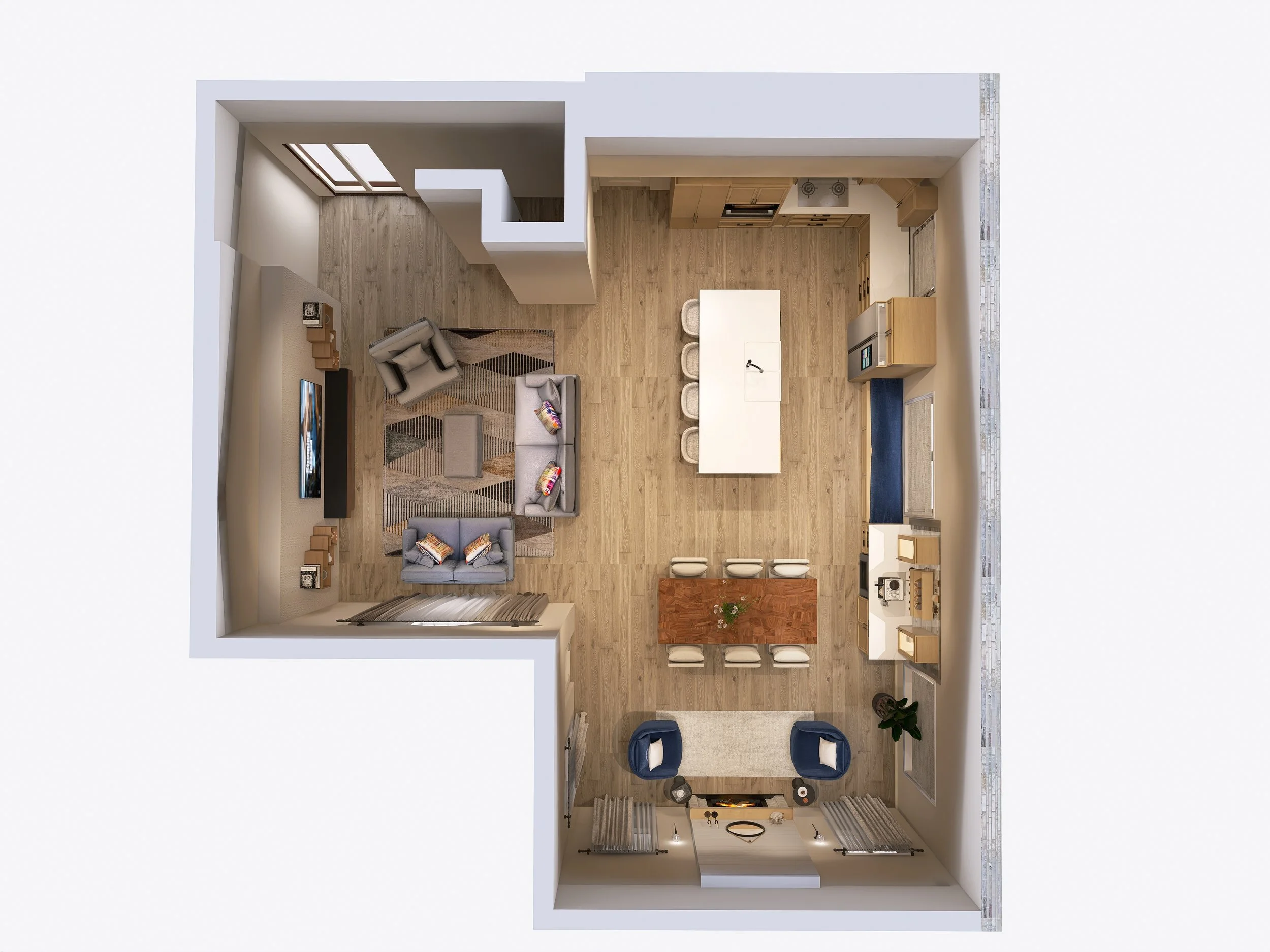 Receive a scaled floorplan with real furniture and 3D renderings